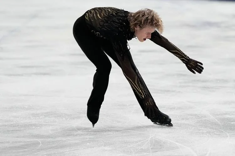 Figure 2. Ilia Malinin mid-fall. Notice he immediately recognizes the situation, and despite the mistake, he continues to skate.